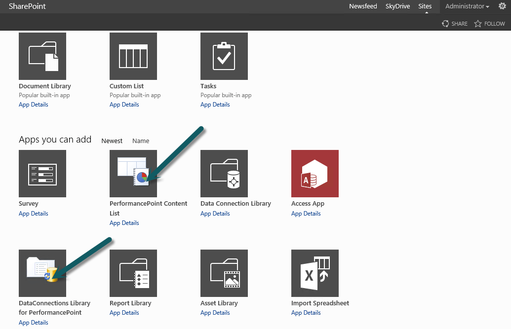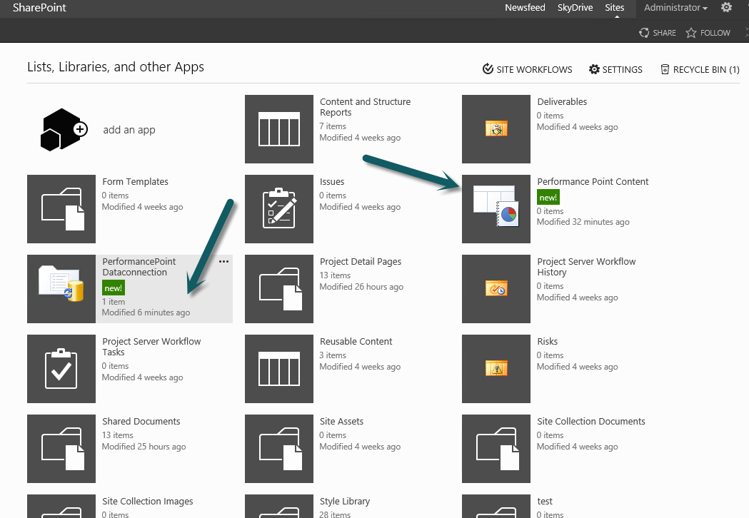Some of you may have noticed that Performance Point is not around in the Business Intelligence area of Project Server 2013. How to actually find and launch this amazing BI tool is quite different compared to Project Server 2010, as it is now an app (actually two apps) that is not enabled out-of-the-box.